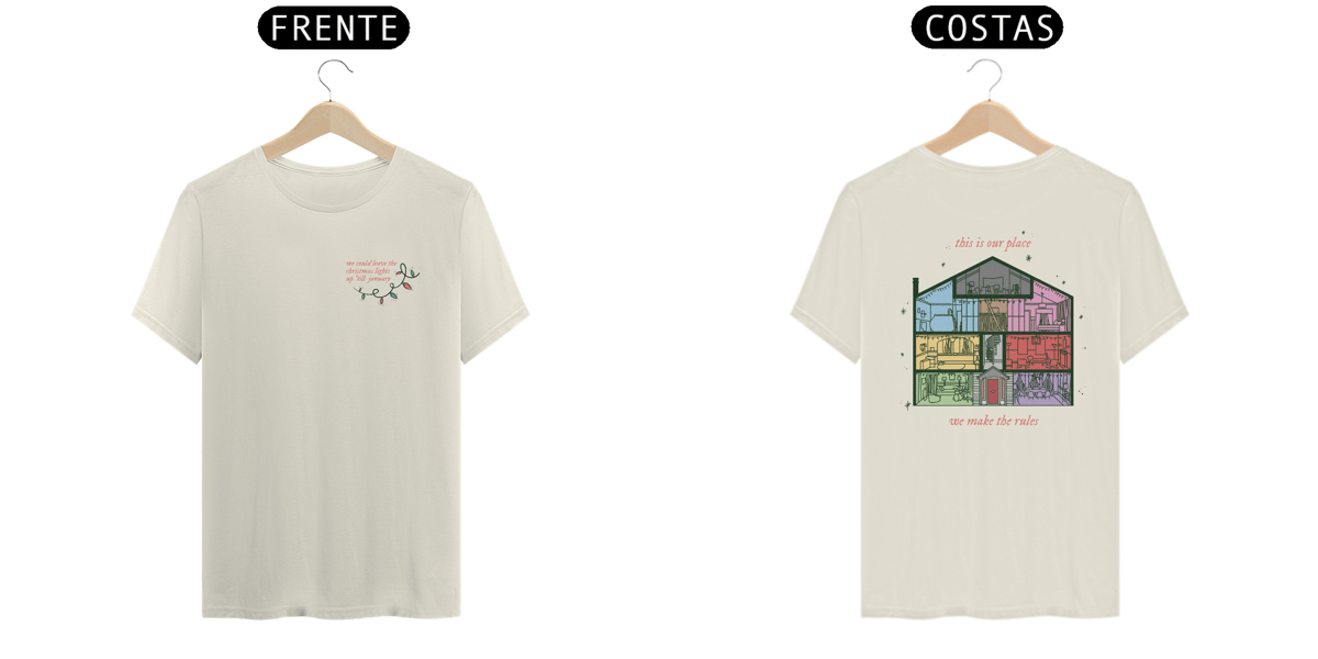 Cores do produto: Como cada tela de computador ou celular tem seu próprio jeito de mostrar cores, então a cor da sua camiseta e da estampa pode ser um pouco diferente do que você viu online.