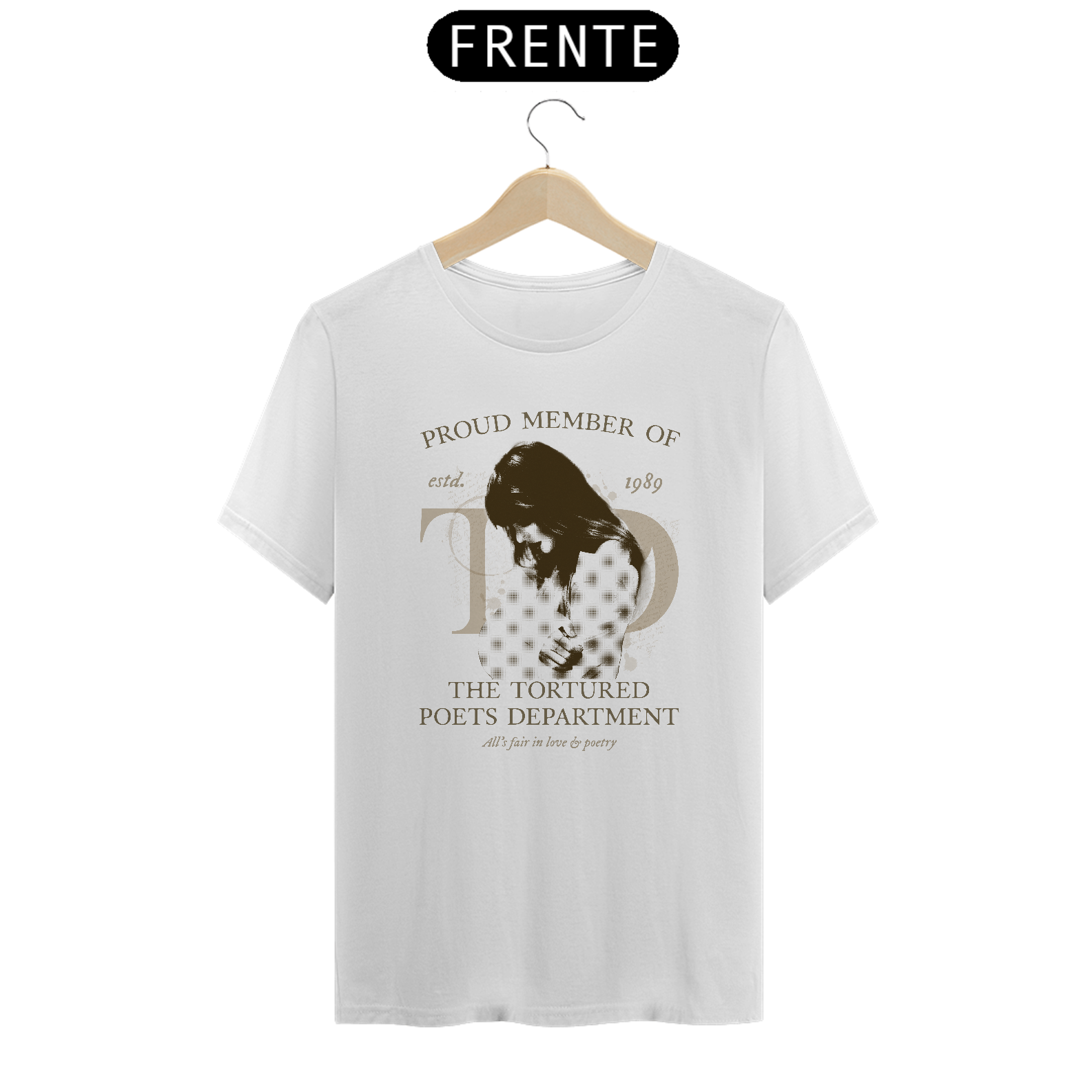 O uniforme perfeito para os membros do The Tortured Poets Department! Se você transforma sentimentos em arte (ou em playlists infinitas), esta camiseta é para você. Um tributo ao álbum que fez do coração partido uma obra-prima.