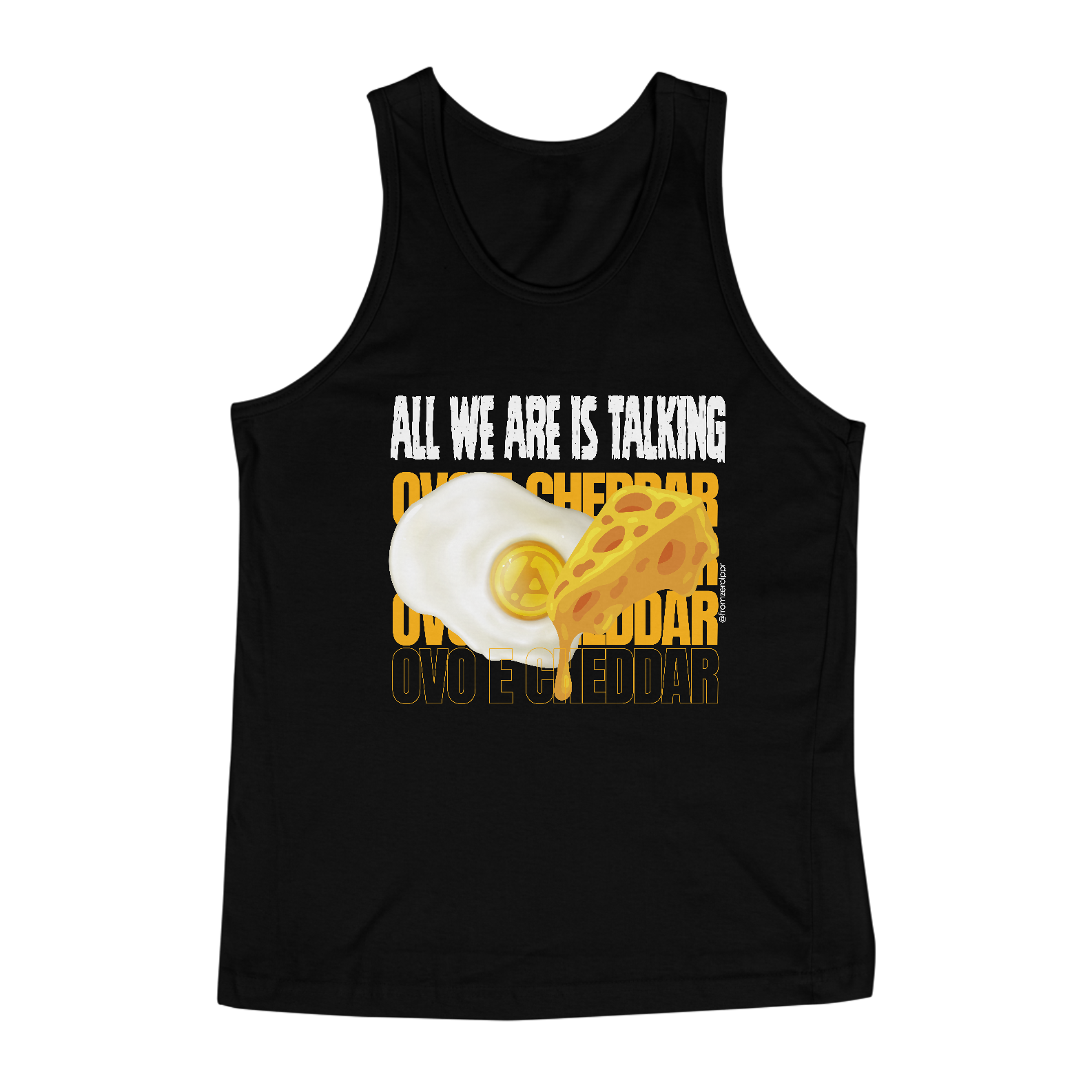 Agora não dá mais pra ouvir 'Over Each Other' sem cantar 'Ovo e Cheddar'! Essa camiseta é pra quem ama Linkin Park e não perde a chance de entrar na brincadeira.